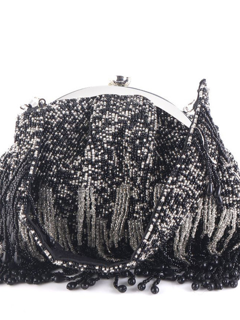 Black and white embroidered potli clutches
