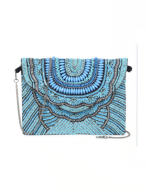 Blue and blue embroidered purse clutches
