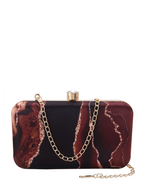 Maroon and brown printed box clutches