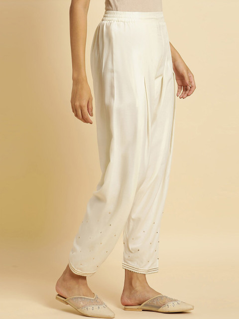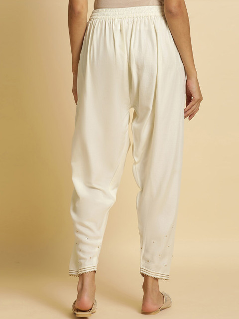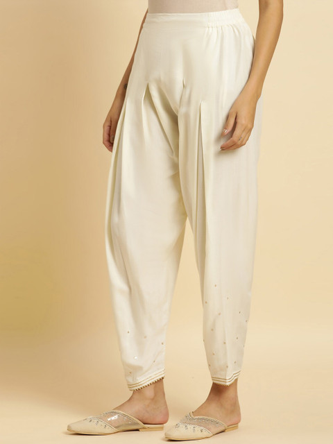 Off-white solid mid-rise salwar has embellished with sequin detailing and lace work, elasticated waistband with slip-on closure