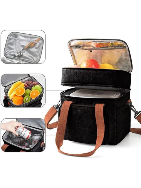 Dimensions: Length=27Cm*21Cm (Width)*18Cm (Height) Capacity: Designed to comfortably fit standard lunch boxes, bottles, fruits, and snacks Fit: Compact yet spacious; ideal for office, school, travel, and picnic use Carry Style: Easy-to-hold top handle for comfortable everyday carrying Weight: Lightweight build ensures effortless handling throughout the day