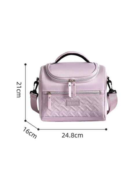 Dimensions: Length=25Cm*21Cm (Width)*16Cm (Height) Capacity: Designed to comfortably fit standard lunch boxes, bottles, fruits, and snacks Fit: Compact yet spacious; ideal for office, school, travel, and picnic use Carry Style: Easy-to-hold top handle for comfortable everyday carrying Weight: Lightweight build ensures effortless handling throughout the day