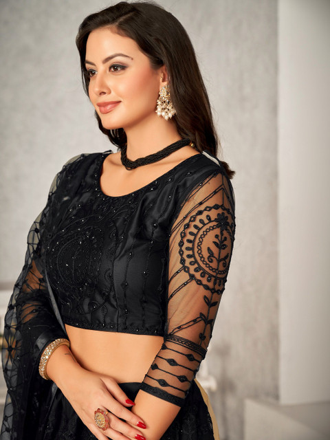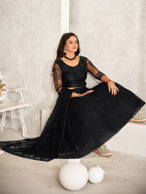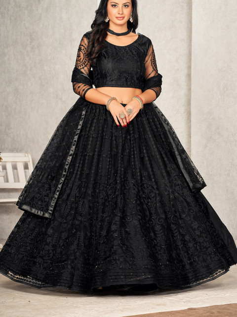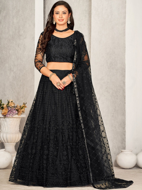Black and black embroidered lehenga choli with dupatta,