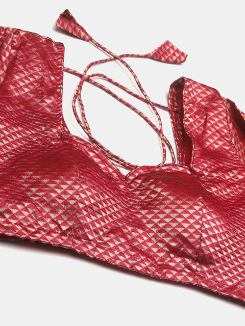 Woven design unstitched blouse, has a round neck, three-quarter sleeves,