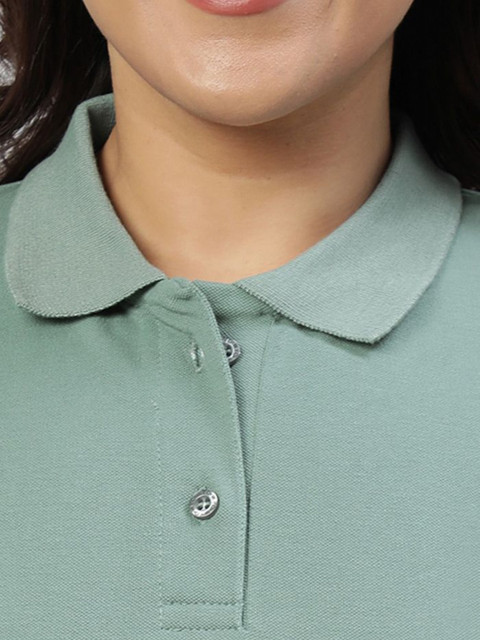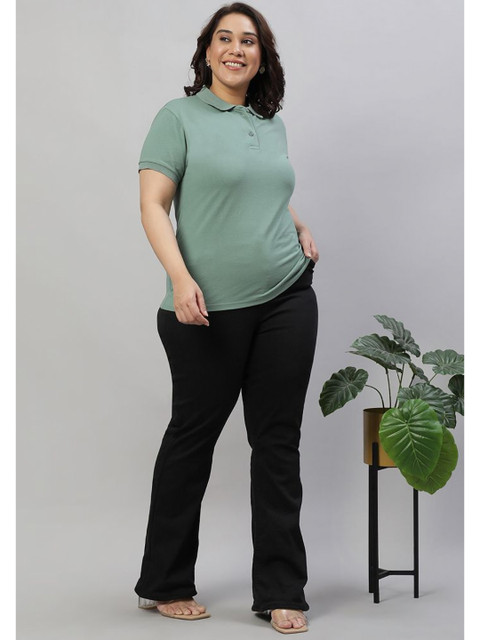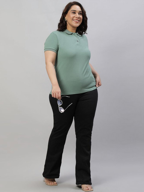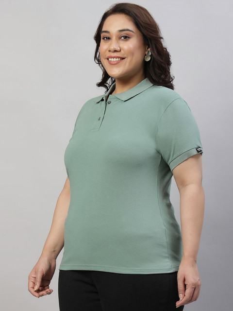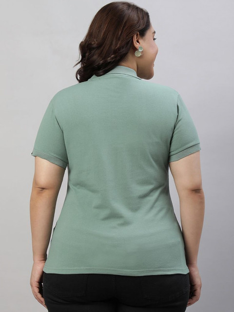 - Women Sea Green PQ Polo Plus Size T-shirt , Polo Collar Neck, Soft Cotton Blend Material, Breathable, Regular Fit, Half Sleeve