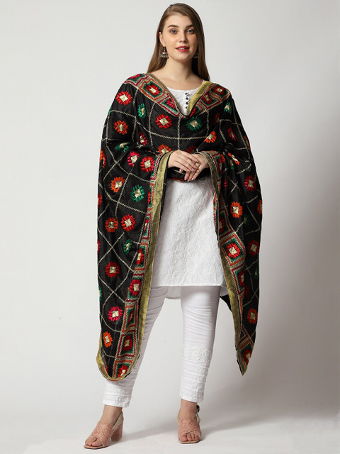 WEAVERS VILLA Ethnic Motifs Embroidered Dupatta