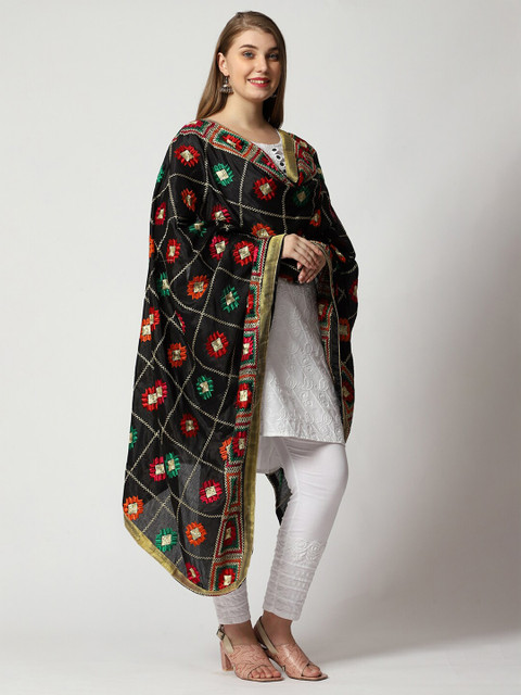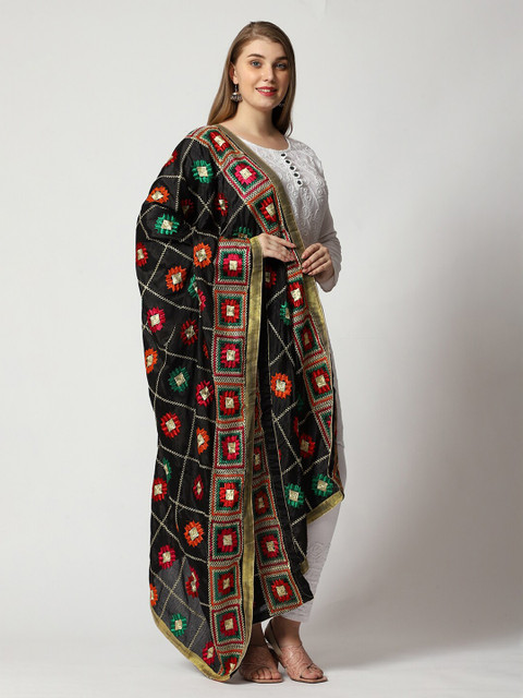 Black and red ethnic motifs embroidered dupatta, taping border