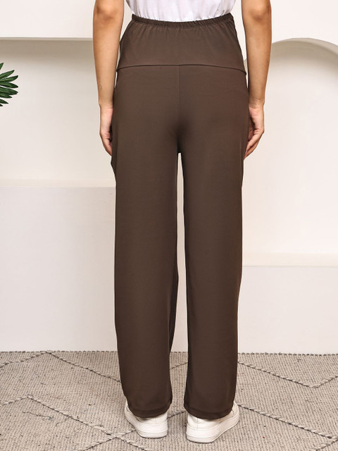 Coffee brown solid regular-fit mid-rise track pants, has an elasticated waistband with slip-on closure and two pockets