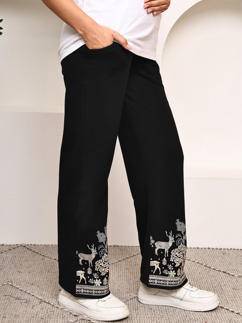 WELL KEPT Women Printed Cotton Mid-Rise Maternity Track Pants