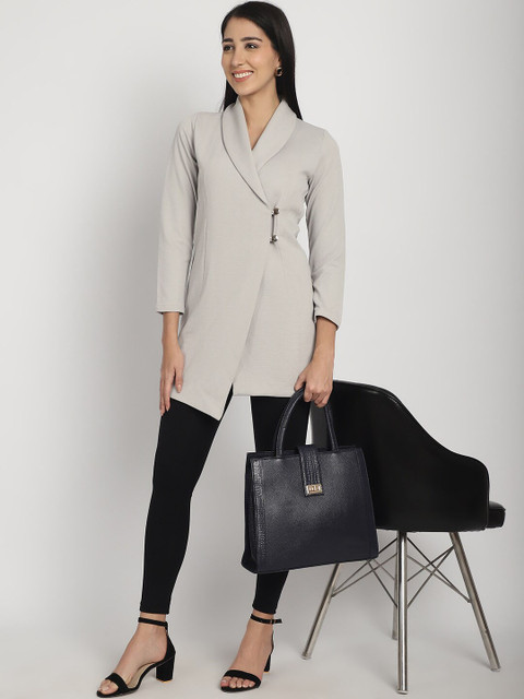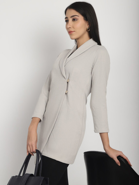 Grey solid regular-fit casual blazer, has a shawl collar, long sleeves, single-breasted with double button closure, two welt pocket and a single-vented back hem