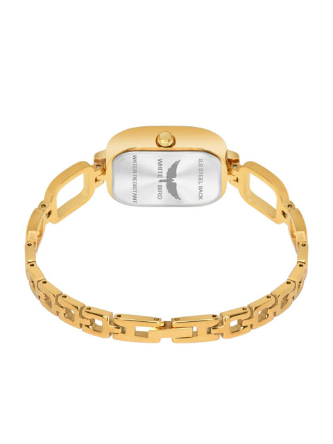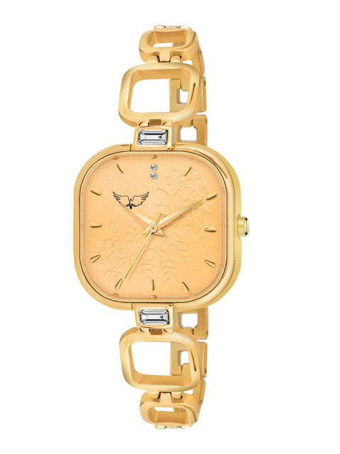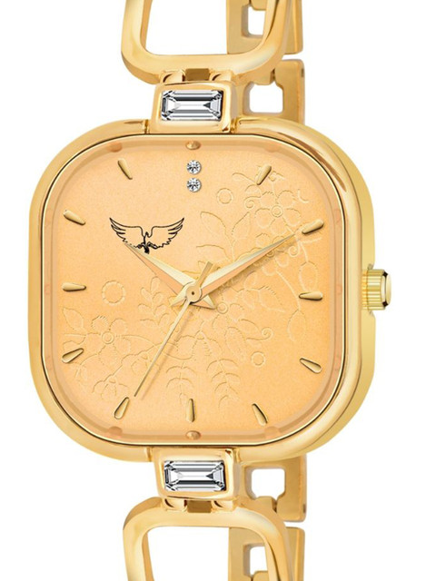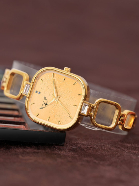 Strap Style: gold toned, bracelet style, metal strap with a button