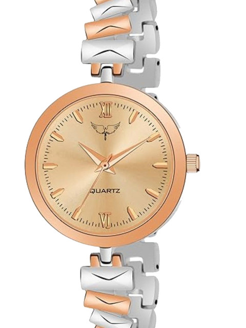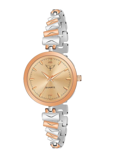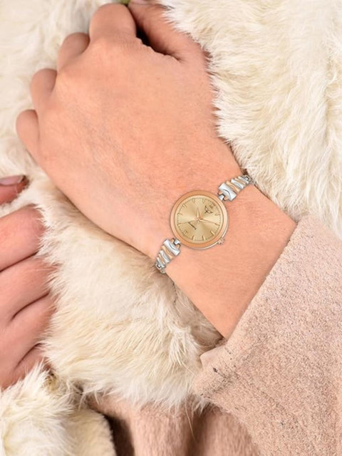Strap Style: rose gold toned, bracelet style, metal strap with a button