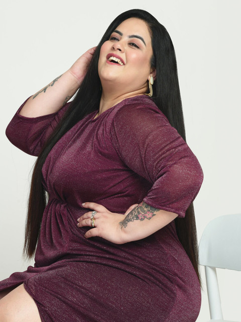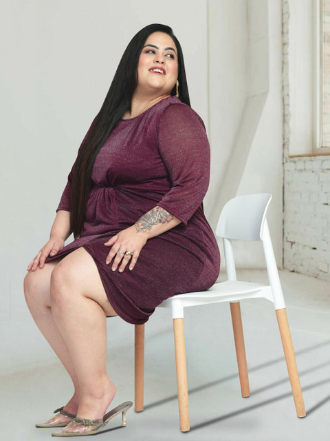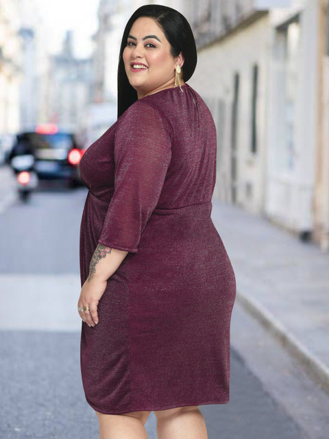 - Burgundy embellished sheath dress