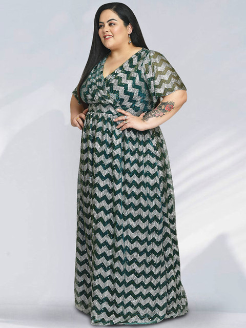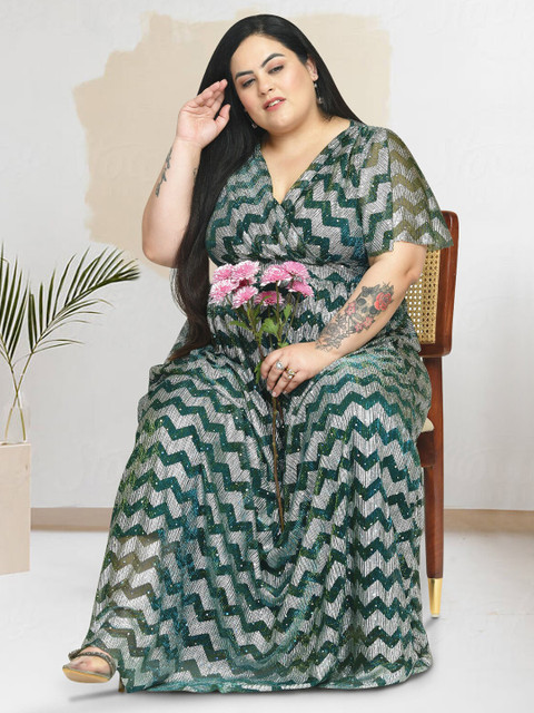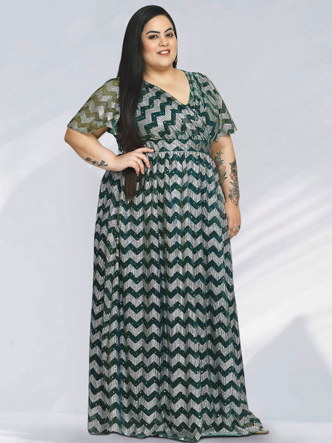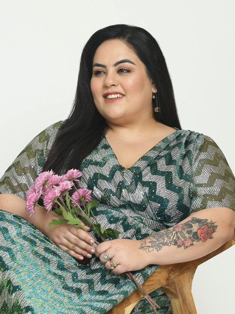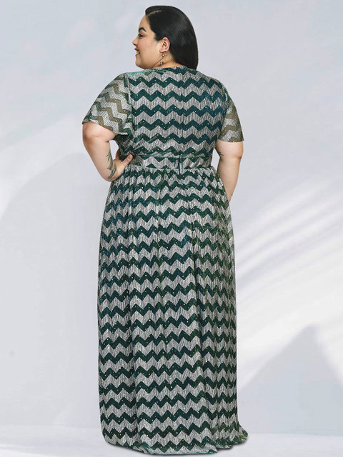 Even though the dress falls in the plus size category the belt below the waist makes it impossible to wear it and it’s not stretchable.