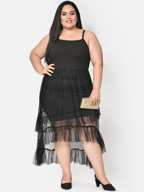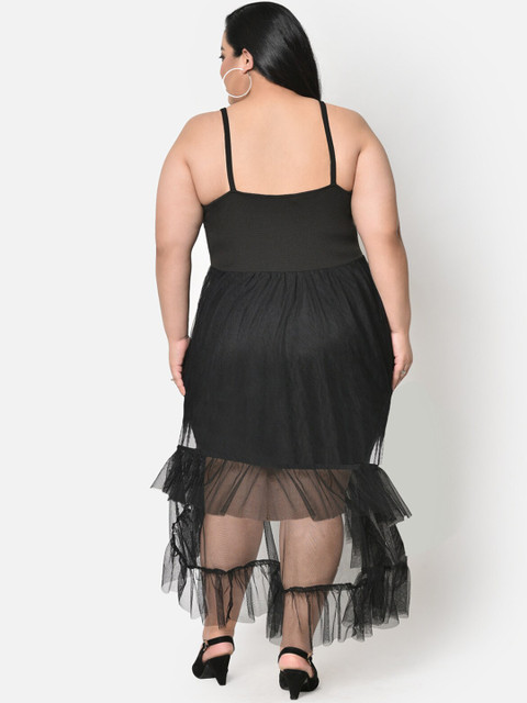 wild U Women Plus Size Black Net Midi Dress