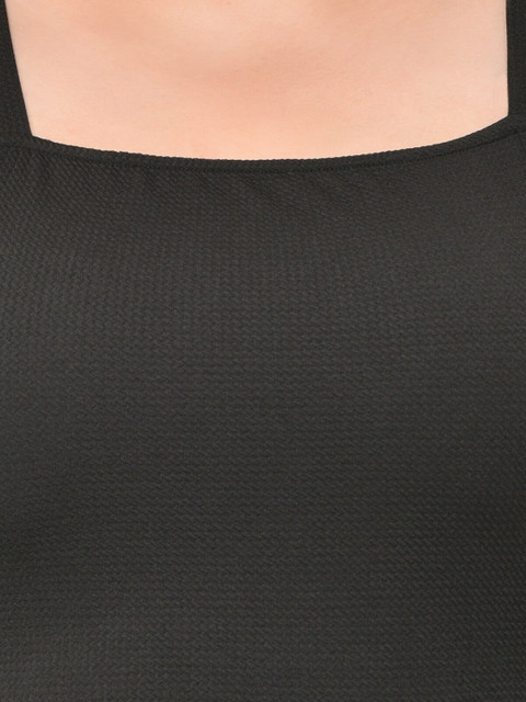 • Black self design fit & flare dress
