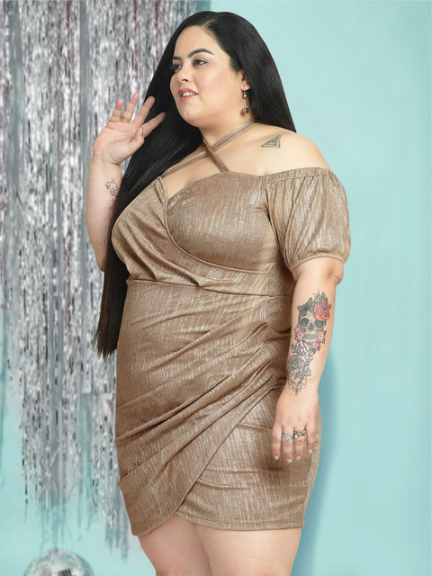 - Beige self design bodycon dress