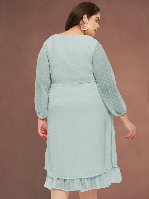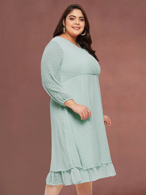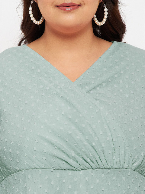 - Green self design Fit and Flare dress