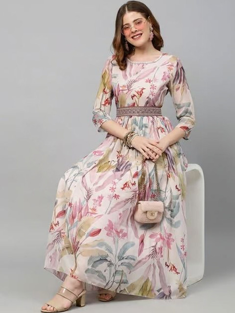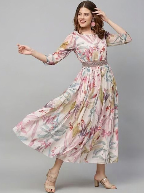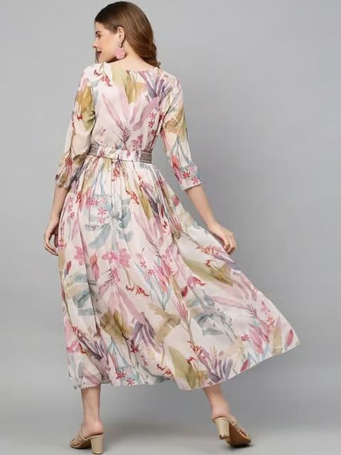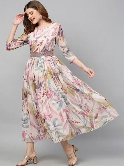 - Pink and pink floral print fit & flare dress