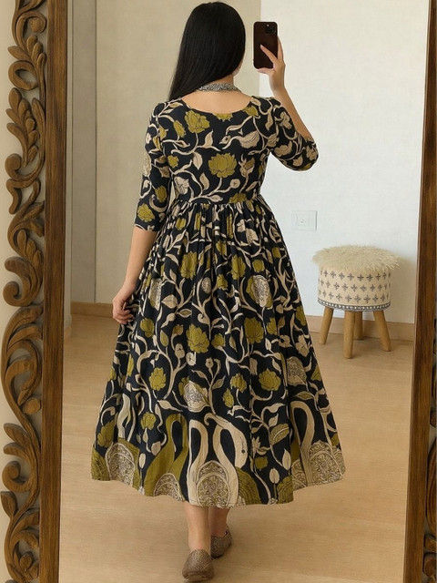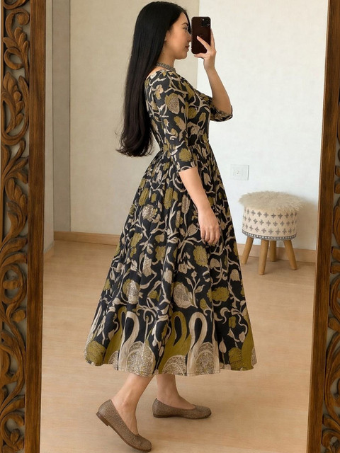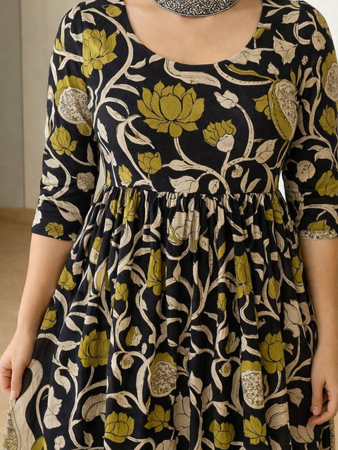 - Black and Black Floral Print Fit & Flare dresses