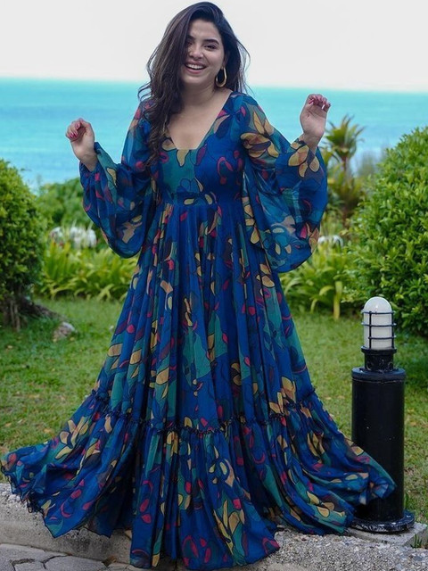WOCLO ENTERPRISE Floral Print Flared Sleeve Fit & Flare Maxi Dress