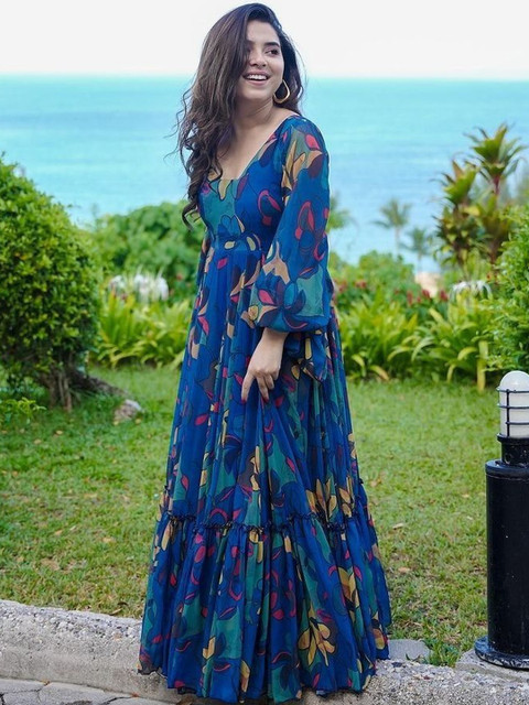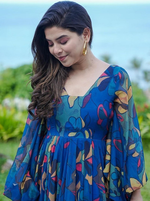 1 review for WOCLO ENTERPRISE Floral Print Flared Sleeve Fit & Flare Maxi Dress