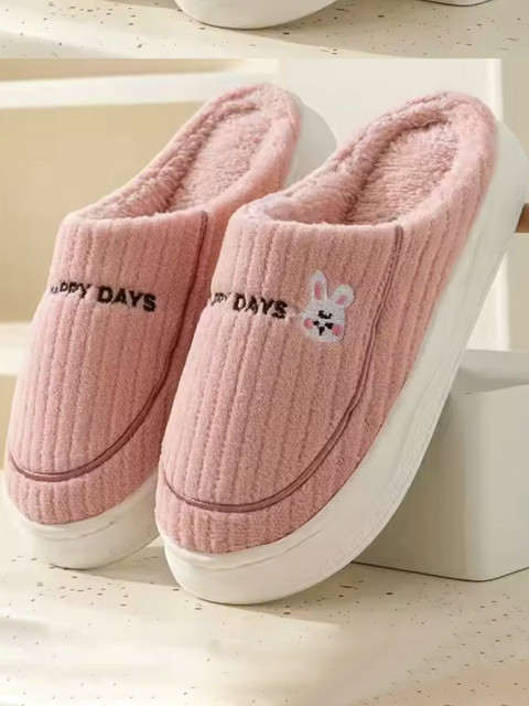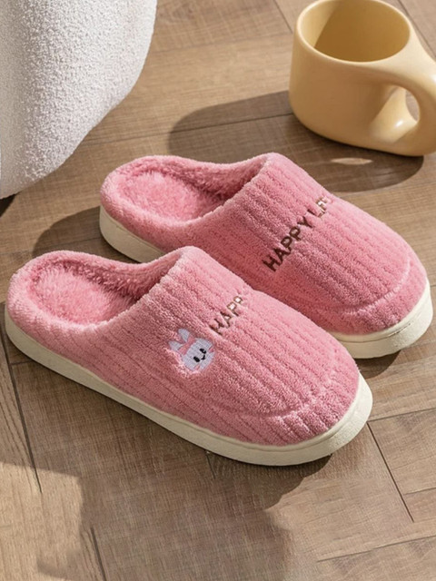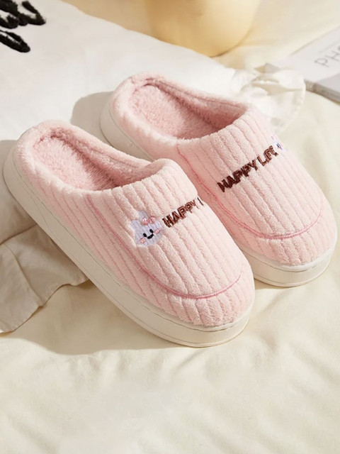 A pair of pink and white self design room slippers