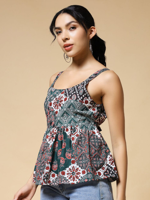 Womenster Women Ethnic Motifs Printed Cotton Peplum Top