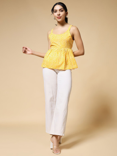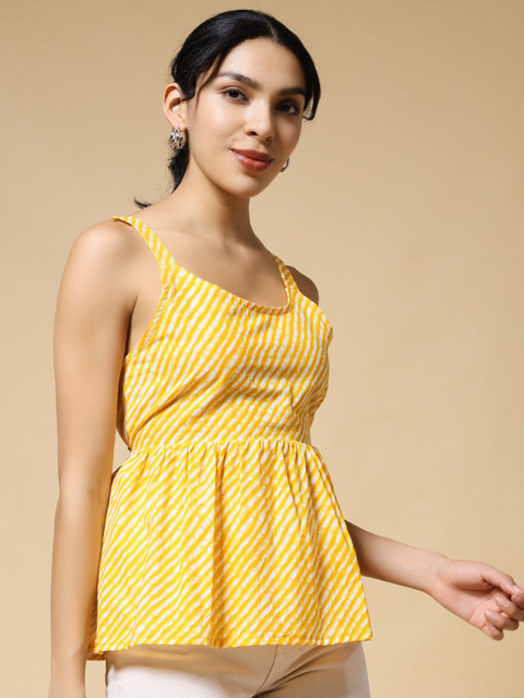 Womenster Women Leheriya Printed Scoop Neck Strappy Sleeveless Ethnic Cotton Top