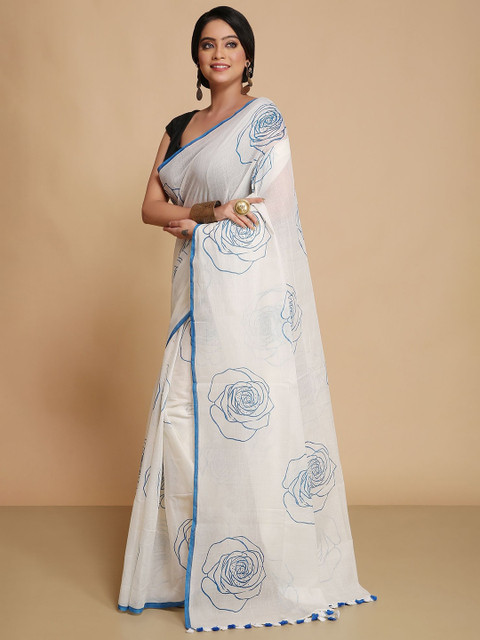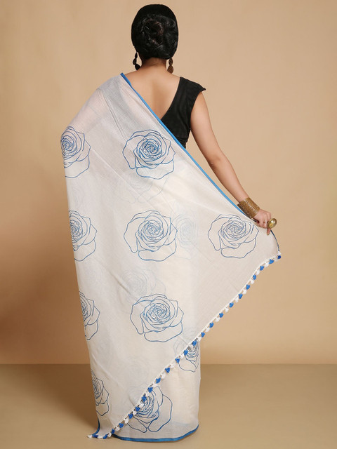 - White and blue saree