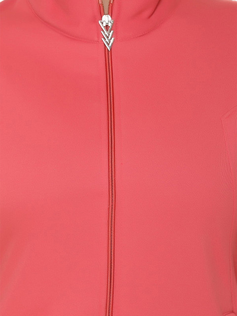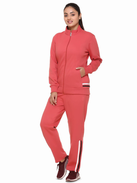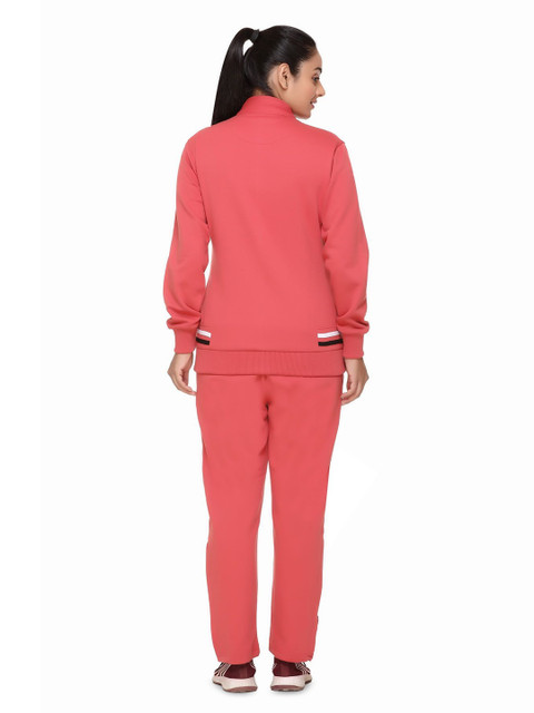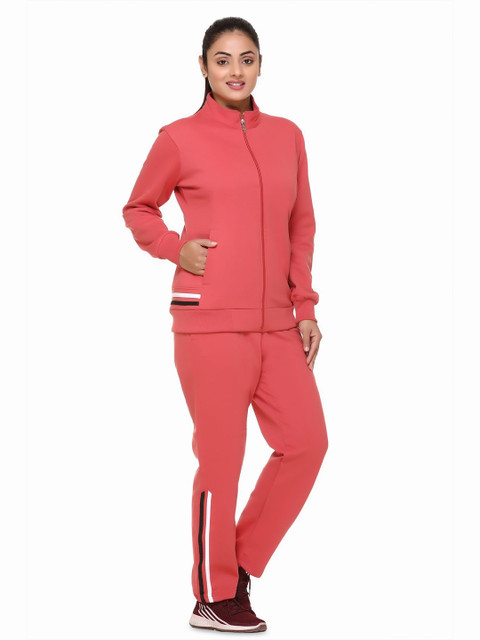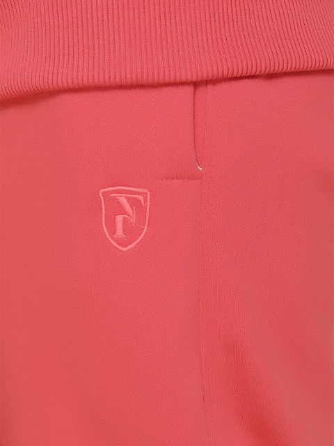 Coral pink striped mid-rise track pants, has an elasticated waistband with slip on closure and two pockets