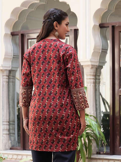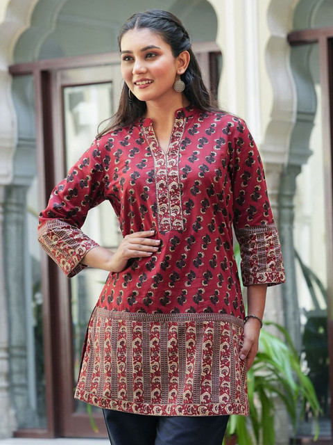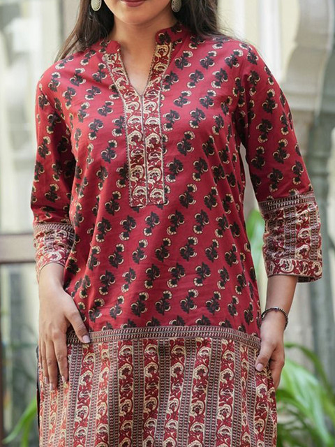 - Maroon and navy blue straight kurti
