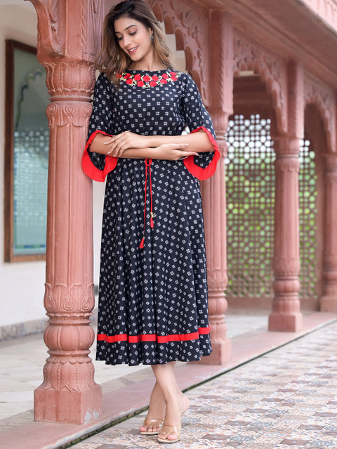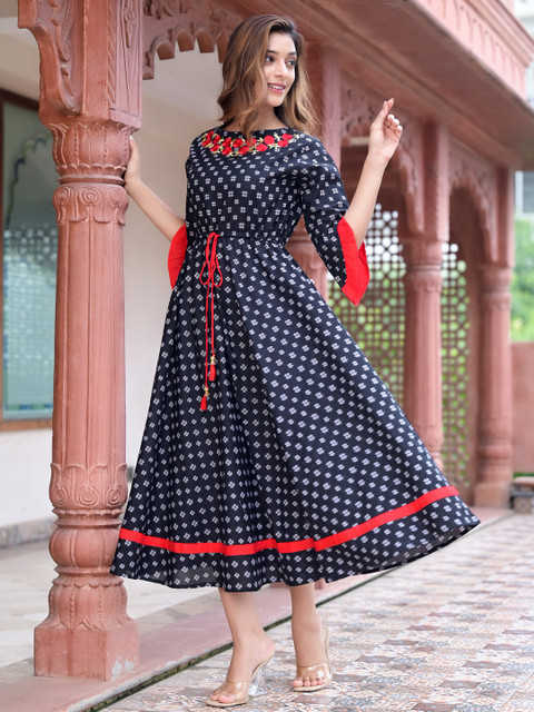 The dress is definitely very beautiful. Fabric is super fine cotton which is comfortable to wear. Preferably it should be dry in shade to keep the black colour intact orelse it may fade away.