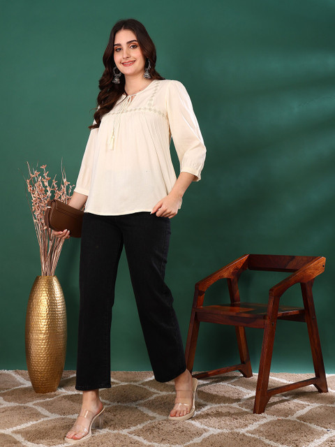 YASH GALLERY Women Embroidered Keyhole Neck Top