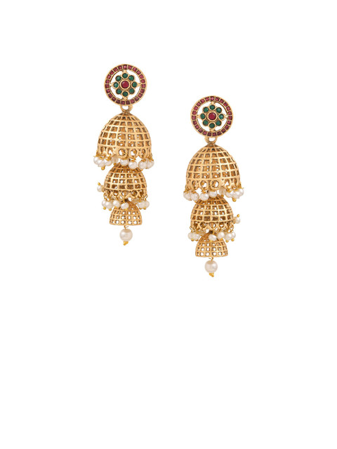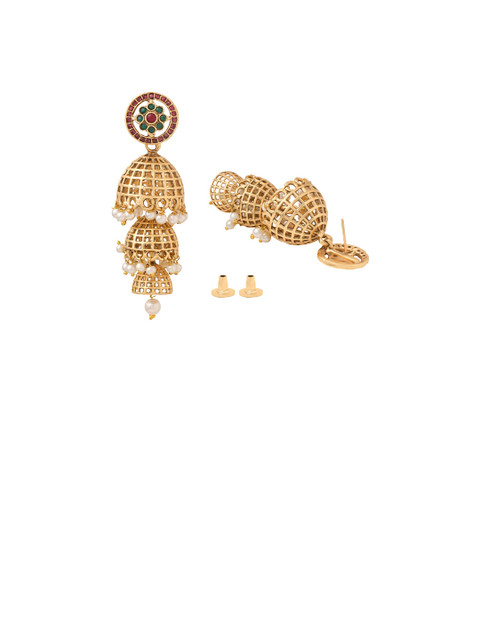 Yellow Chimes Gold Plated Dome Shaped Jhumkas Earrings