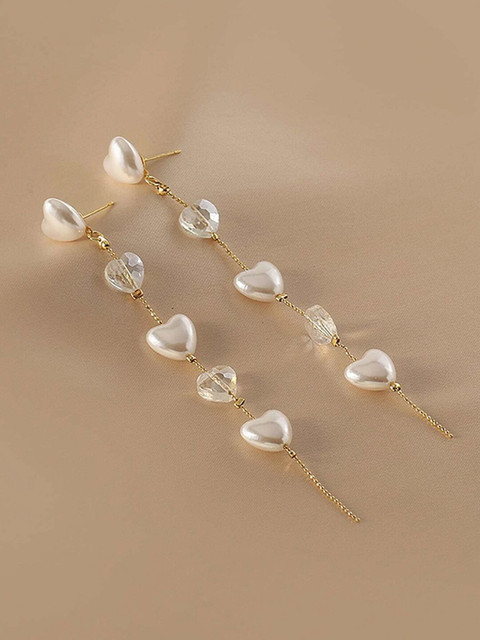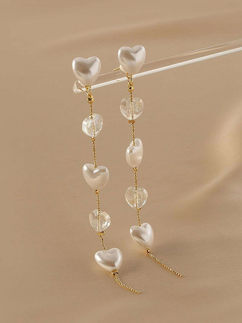 Gold-toned contemporary drop earrings, gold-plated, has artificial stones and beads