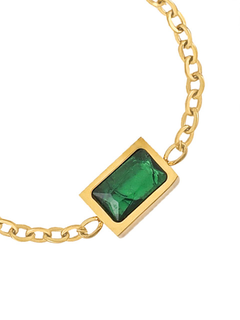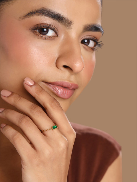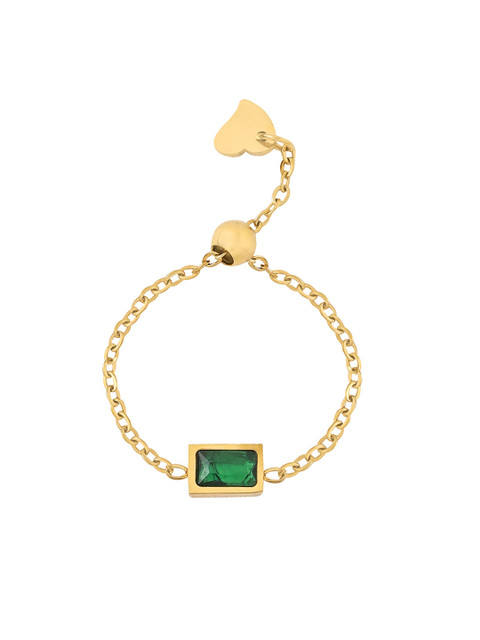 Gold-toned & green adjustable finger ring, has stone-studded details