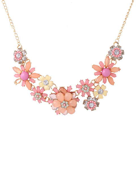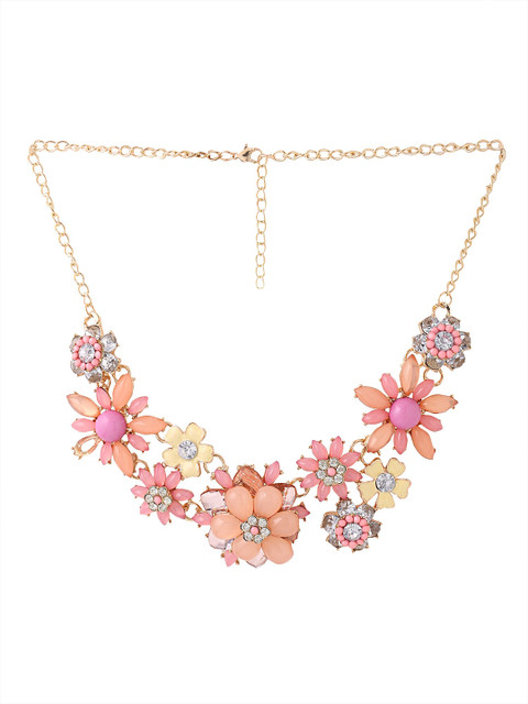 Yellow Chimes Gold Toned Pink color Floral Designed Crystal Necklace