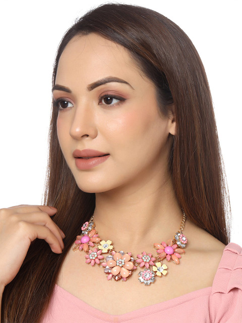 3 reviews for Yellow Chimes Gold Toned Pink color Floral Designed Crystal Necklace