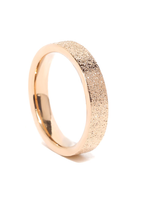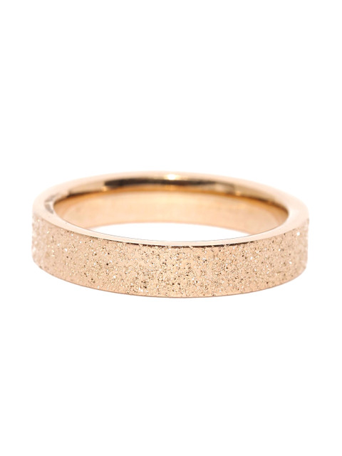 A rose gold plated and matte textured Stainless Steel Ring with surface band styling
