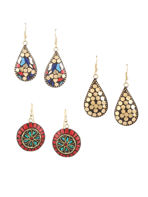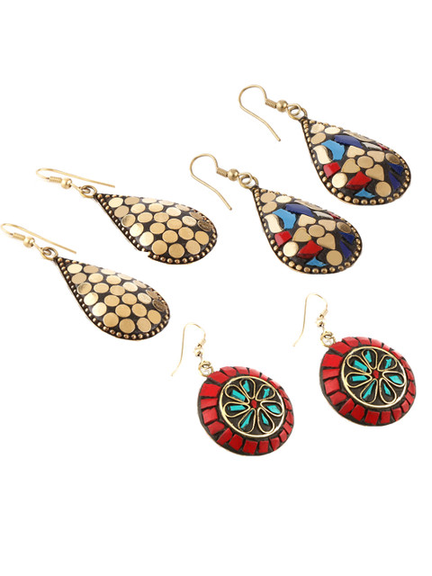 Set of 3 pairs of drop earrings