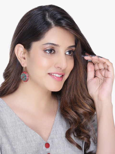 Red, black and blue round drop earrings