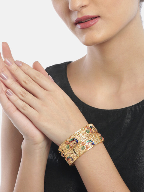 Make a unique style statement with these intricately designed bangles that will effortlessly enhance your ethnic ensemble. Team them with a traditional saree and embellished sandals for maximum effect.