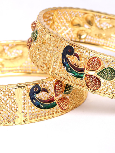 Set of 2 blue and red Gold-Plated peacock-shaped enamelled detail bangles