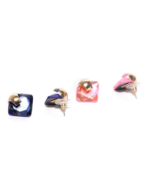 Set of two contemporary studs in pink and blue, gold-plated, has artificial stones