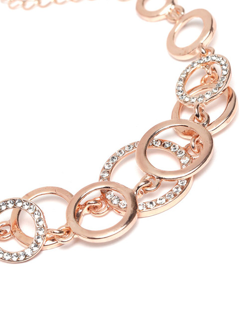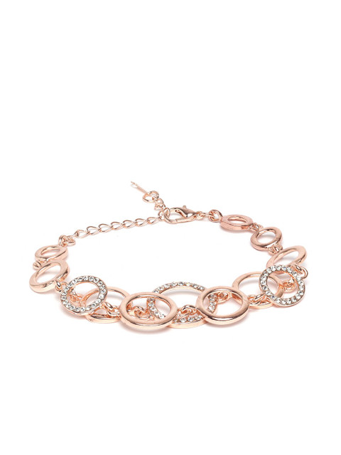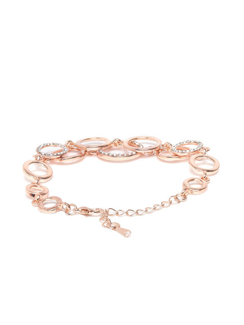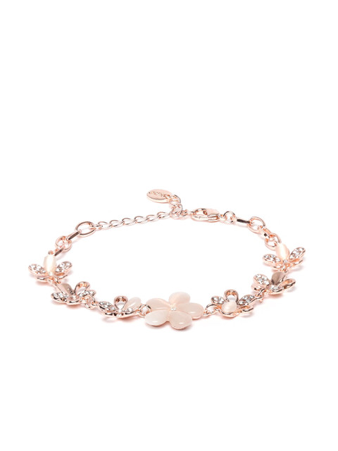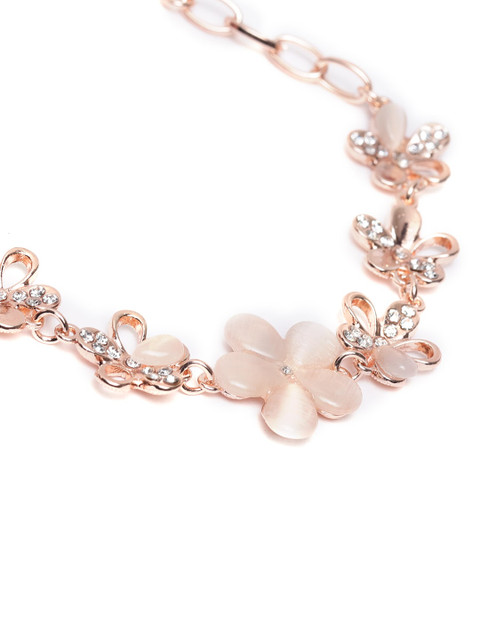 Pink rose gold plated stone studded floral shaped charm bracelets