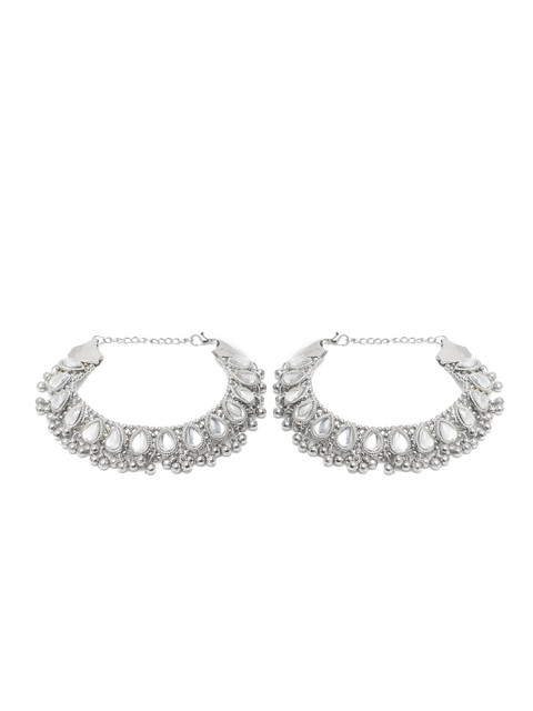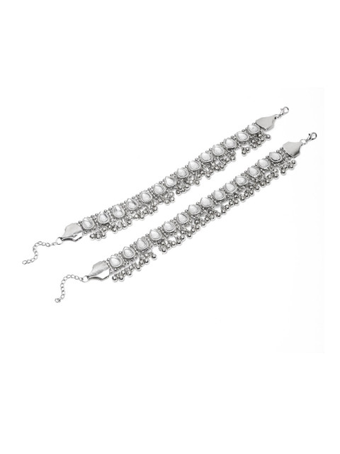 YouBella Set Of 2 Silver-Plated Beaded Anklets