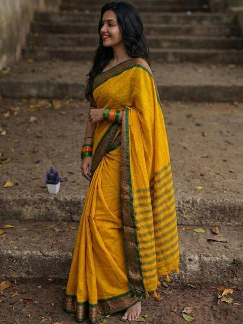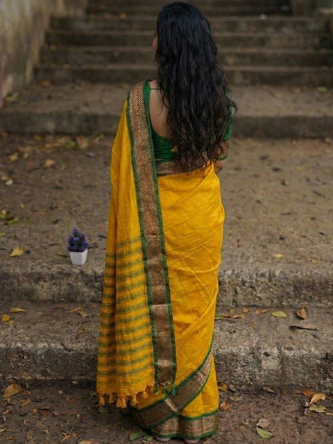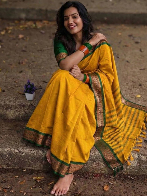 - Yellow and green paithani saree