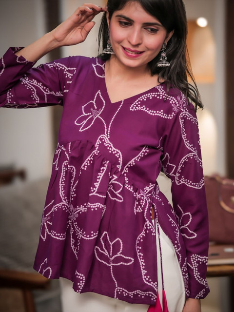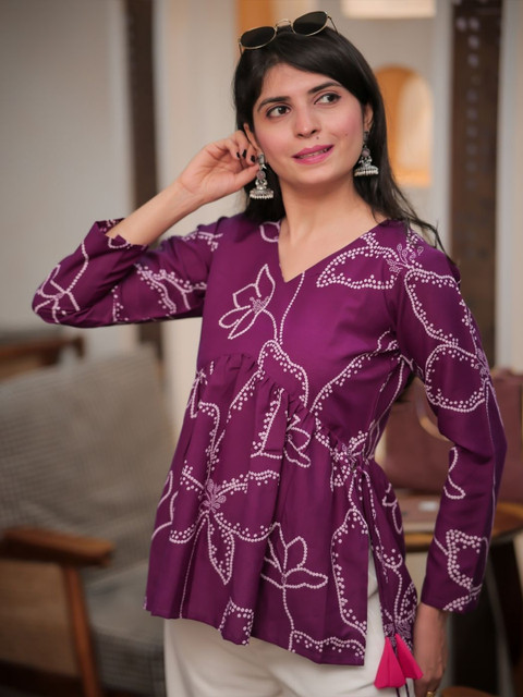 I absolutely adore this Bandhani print peplum top! The fit is so flattering, and the red and yellow colors are incredibly vibrant—it instantly brightens up any outfit. I love how the little tassel tie-up adds a fun, festive touch. It’s light, comfortable, and a perfect blend of ethnic and casual. Highly recommend for a stylish, comfy look!