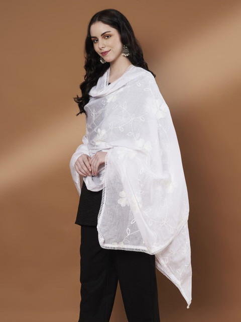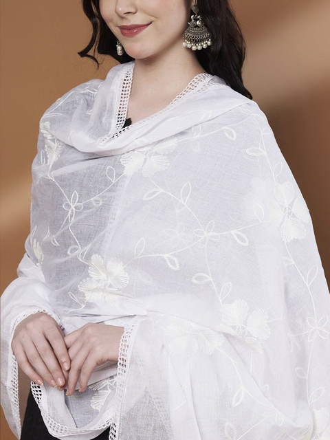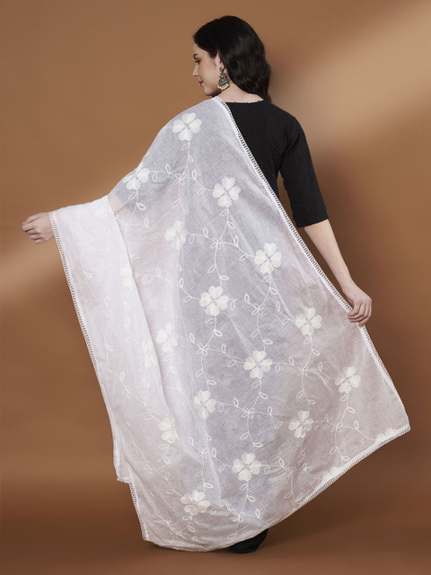 White floral embroidered dupatta thread work, embellished border